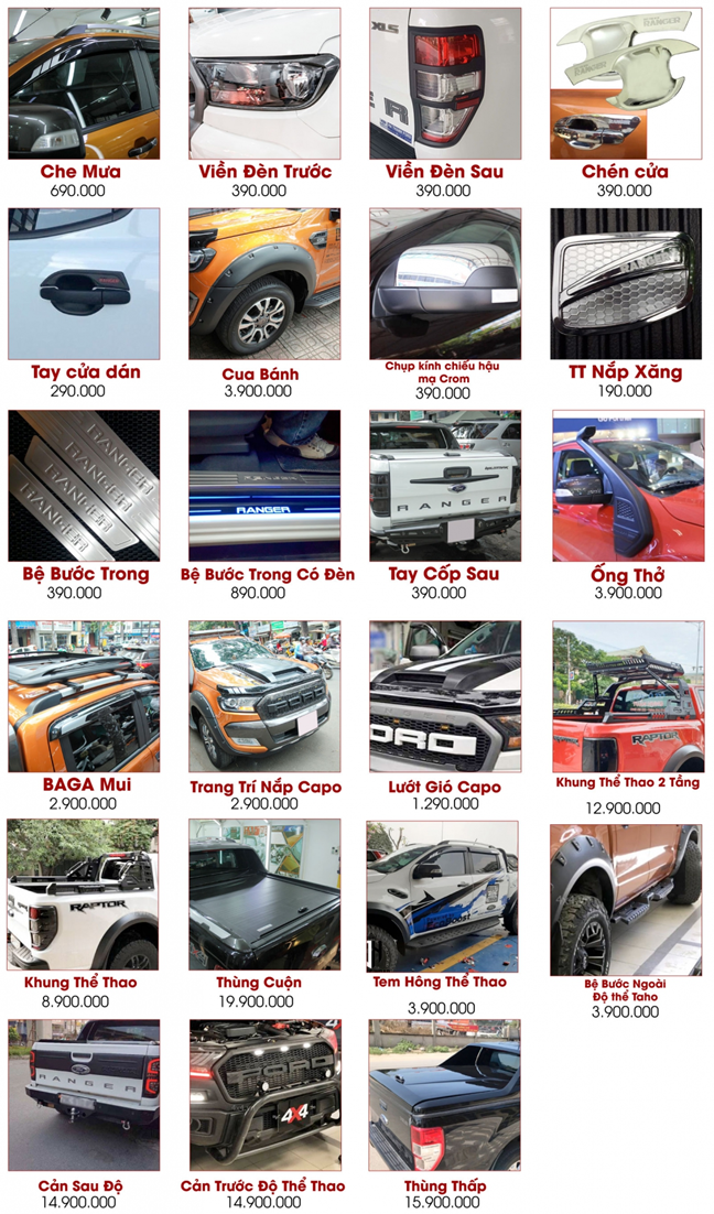 SET PHỤ KIỆN TRANG TRÍ THEO XE FORD RANGER