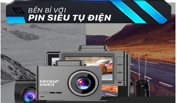 – R4A là một trong số ít các dòng camera hành trình sử dụng pin siêu tụ điện của Vietmap. Điểm cải tiến này sẽ giúp thiết bị có được quá trình hoạt động bền bỉ và ổn định theo thời gian.