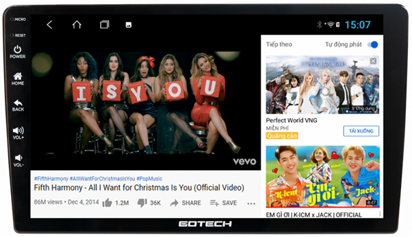 – Màn hình Gotech GT8 Max mở ra “cánh cửa” giải trí đa phương tiện cho mọi dòng xe phổ thông. Với kho giải trí CH PLAY, người dùng có thể tải vô số ứng dụng hấp dẫn như: Spotify, Youtube, Netflix, VTV Go, K+,…Thậm chí, ngay trên màn hình thông minh Gotech GT8 Max bạn có thể lướt web, truy cập Facebook, chơi game như đang cầm trong tay chiếc máy tính bảng cao cấp. Tính năng này đặc biệt phát huy tác dụng khi tắc đường, khi lái xe đường dài hoặc trên xe có trẻ nhỏ.