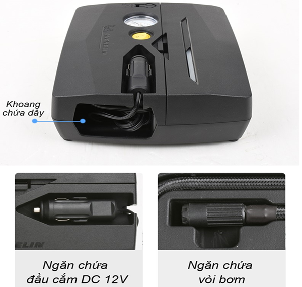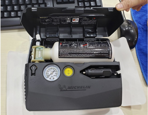 - Máy bơm kèm vá lốp Michelin được sử dụng trong những trường hợp khẩn cấp như bị cán đinh khi đang lưu thông và xung quanh không có dịch vụ vá lốp