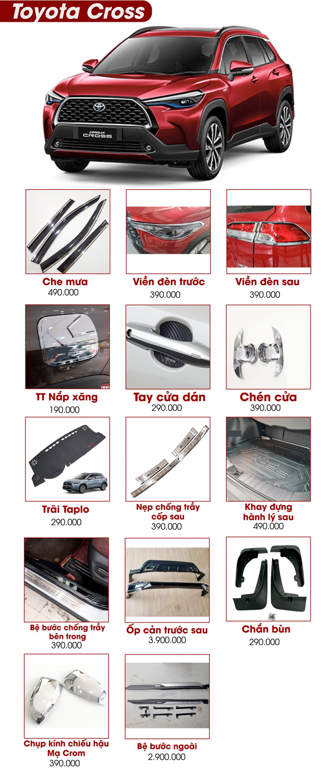 SET PHỤ KIỆN TRANG TRÍ THEO XE TOYOTA CROSS