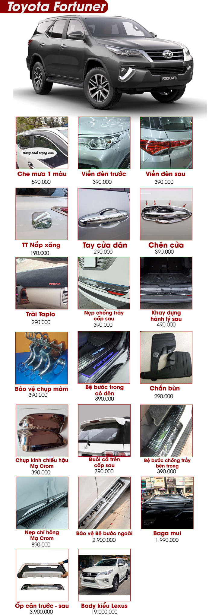 SET PHỤ KIỆN TRANG TRÍ THEO XE TOYOTA FOTUNER